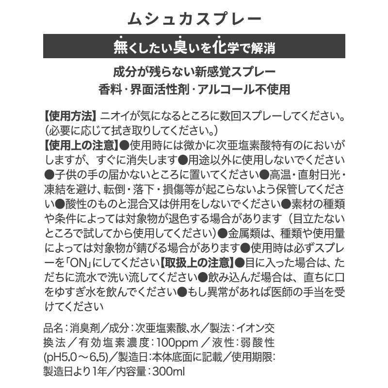 ★まとめ買いでお得★【香りも成分も残らない新感覚消臭スプレー】MUSHCA(ムシュカ)スプレー(300mL) 使いやすく「しっかり」消臭